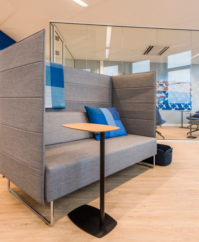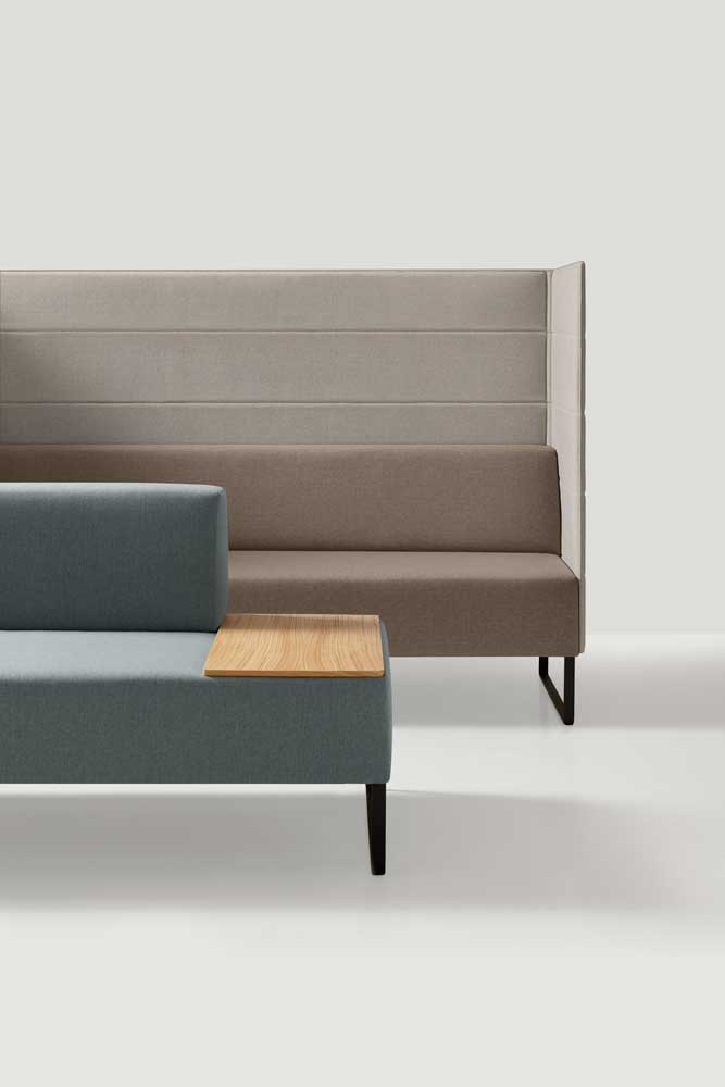 Met zijn hoge rug en zijwanden is de akoestische Tris bank uitermate geschikt voor een werkoverleg zonder geluidsoverlast. De Tris bank is een ruime tweezitter die uit te voeren is in diverse materialen, zoals kunstleder of stof. Het aantal mogelijke kleuren is eindeloos. Het stalen onderstel is beschikbaar in zwart, wit of chroom. Misschien ook interessant: de akoestische Tris fauteuil voor werken of telefoneren in alle rust.