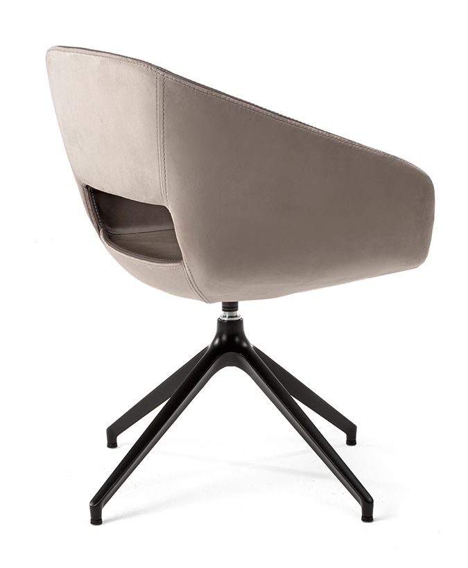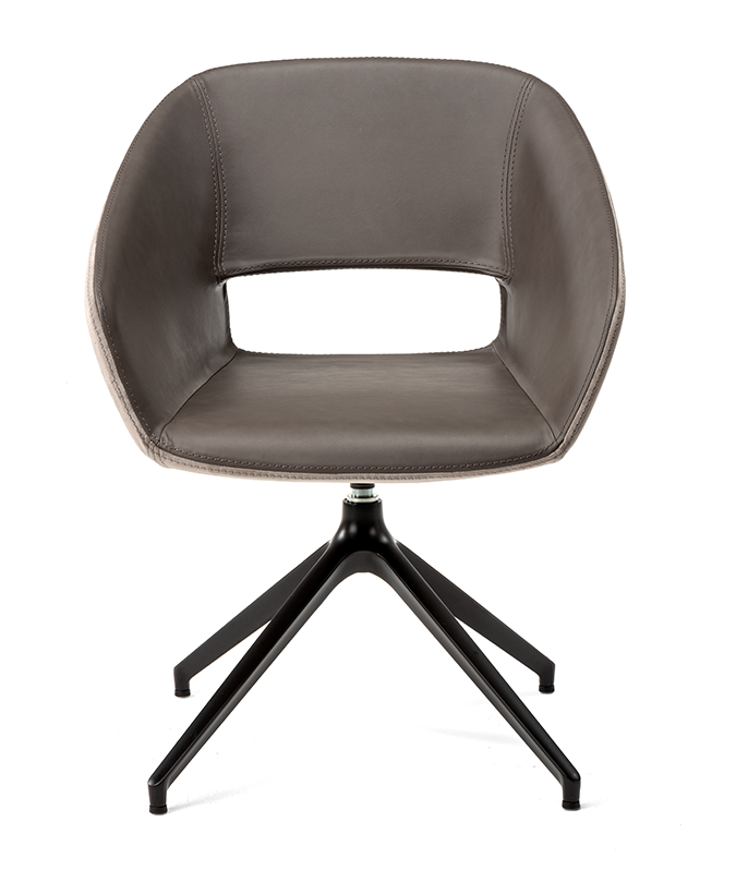 De Burq vergaderstoel open (swivel spider poot) is voorzien van een draaibaar spider frame, verkrijgbaar in zwart (gecoat) of chroom. De moderne zitschaal kan worden bekleed met wol, stof of leer in talloze tinten. De Burq vergaderstoel open is ook verkrijgbaar met een 4-poots houten onderstel, een vaste spiderpoot, als barkruk of met een houten spiderpootonderstel.