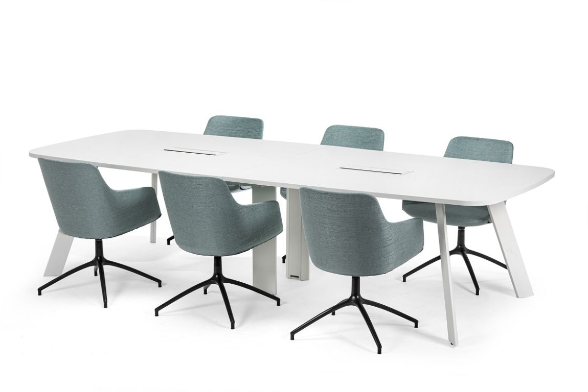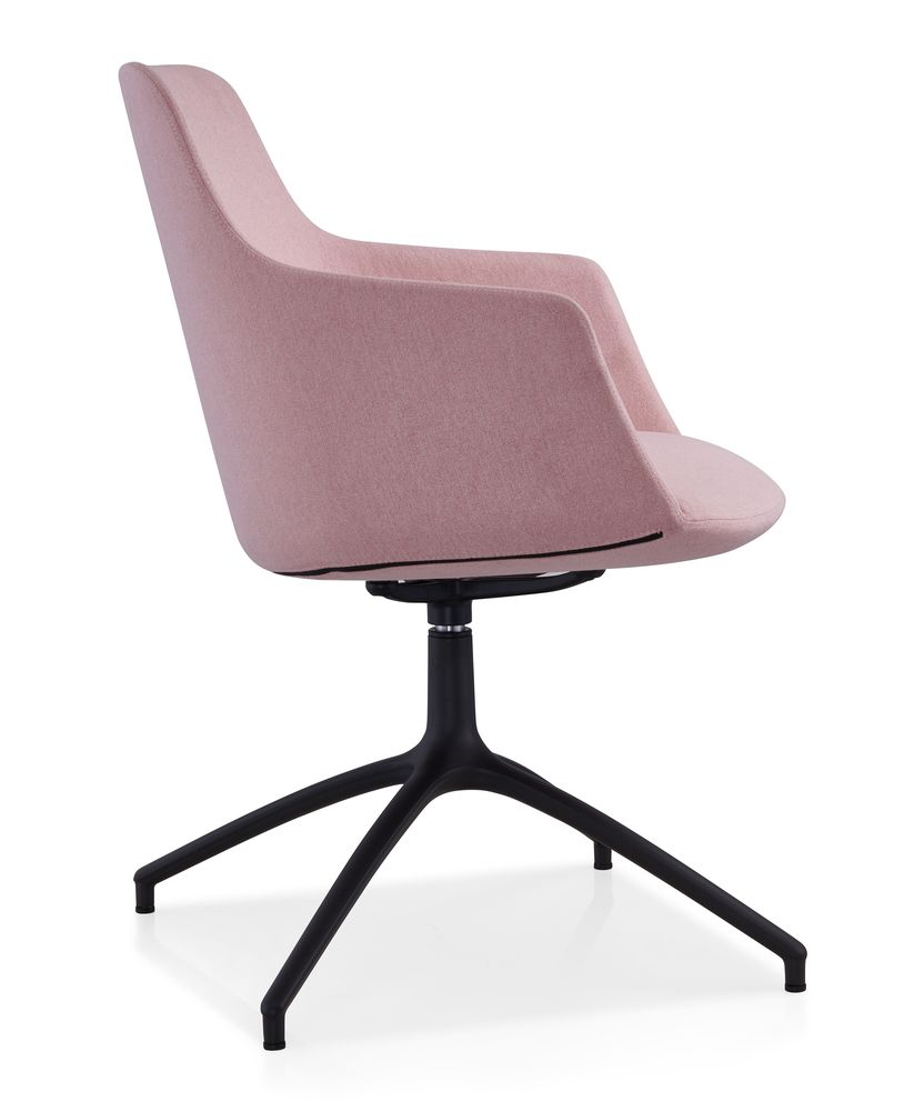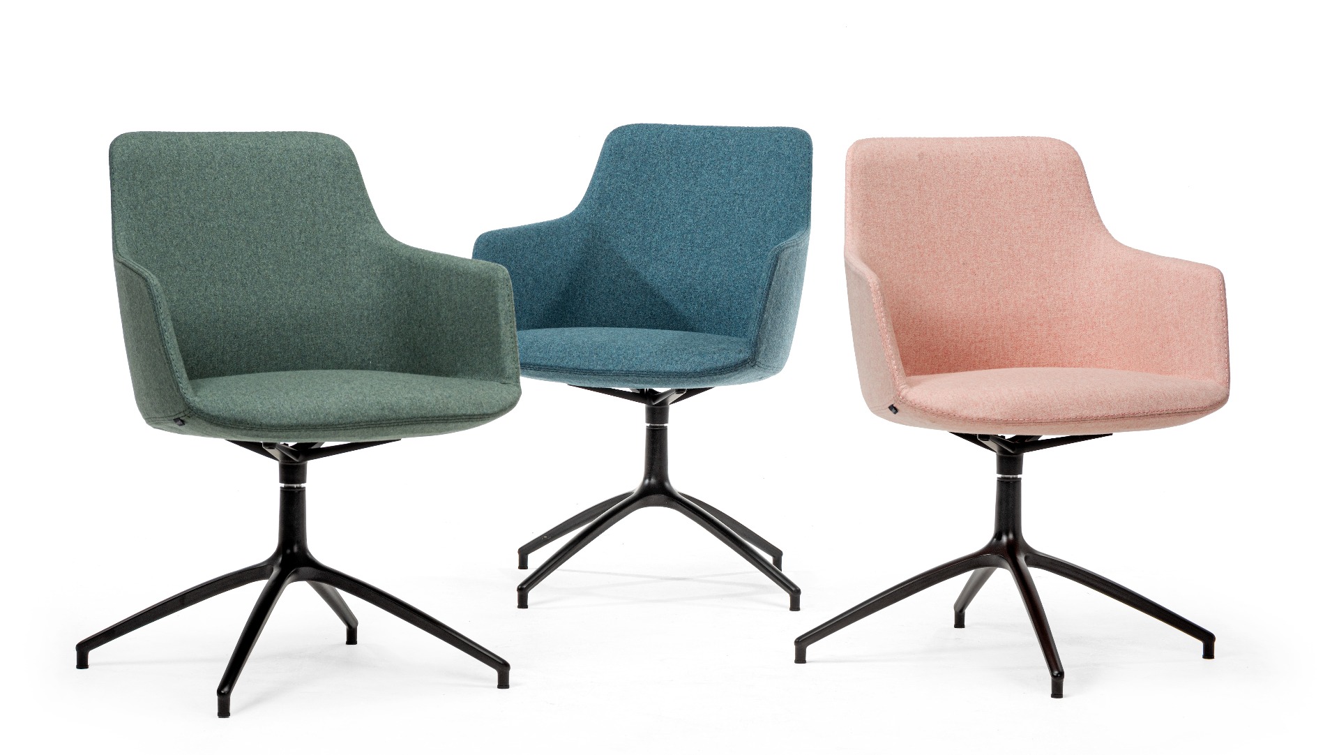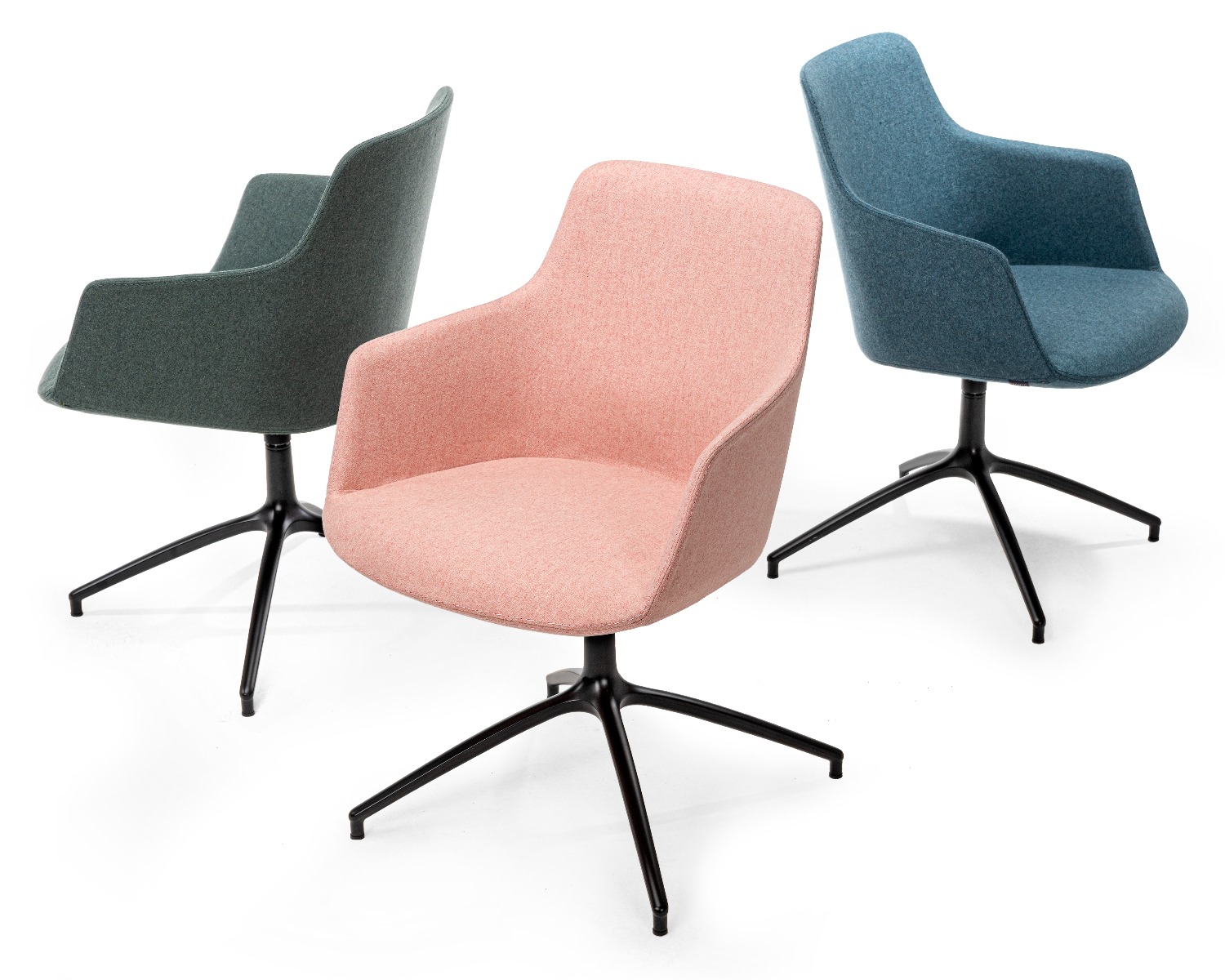 De Cleo vergaderstoel met spinpoot is standaard draaibaar uitgevoerd. De vergaderstoel is geheel naar wens samen te stellen. Er zijn verschillende stofferingen en kleuren mogelijk.