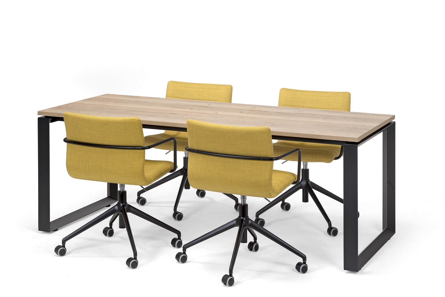 De Dia vergadertafel is standaard leverbaar in diverse uitvoeringen. Het werkblad is 25 mm dik en u heeft keuze uit diverse decors.