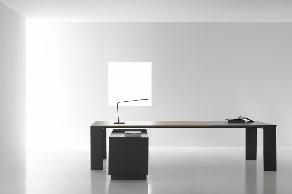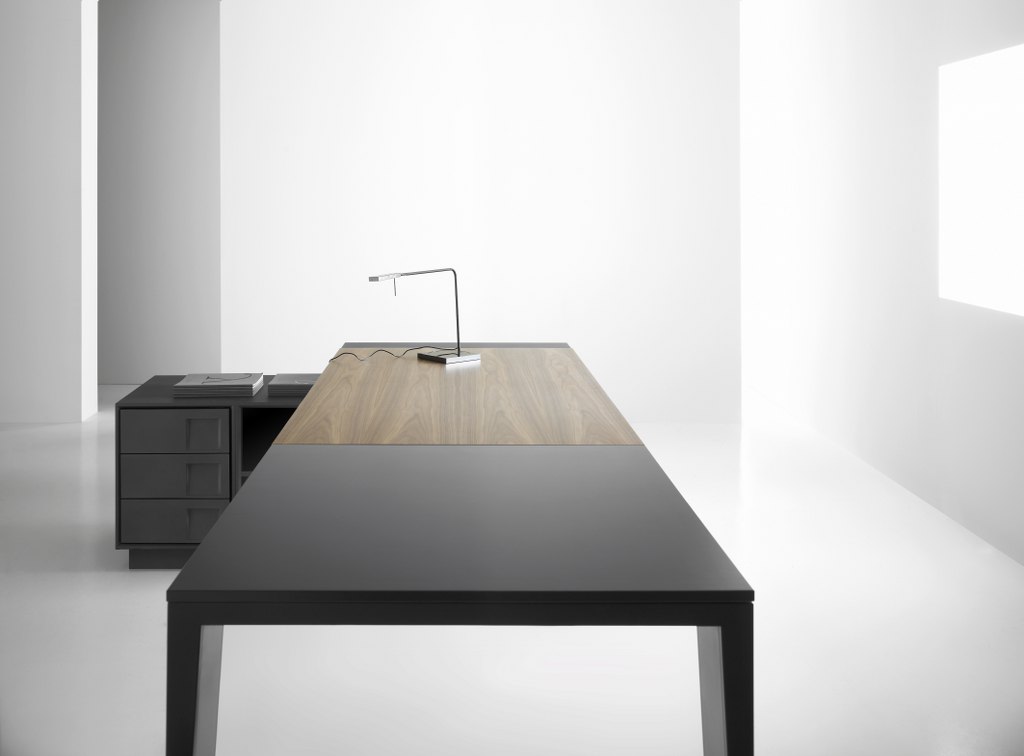 De Maya directielijn heeft veel mogelijkheden en is geheel op uw specifieke wensen af te stemmen. Het Maya directiebureau XL is standaard uitgerust met kabelgeleiding in de poten. Bij het Maya directiebureau XL Deluxe kunt u het werkblad met twee verschillende decors configureren.