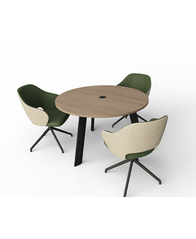 De ronde vergadertafel uit de Echo-serie is leverbaar met een diameter van 80, 100 of 120 centimeter. Door het slanke 3-poot onderstel krijgt de tafel een minimalistische en moderne uitstraling. Het werkblad van de Echo vergadertafel kan worden uitgevoerd in diverse bladdecors en voor het onderstel is een ruime selectie kleuren beschikbaar.