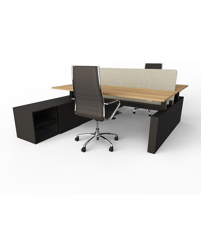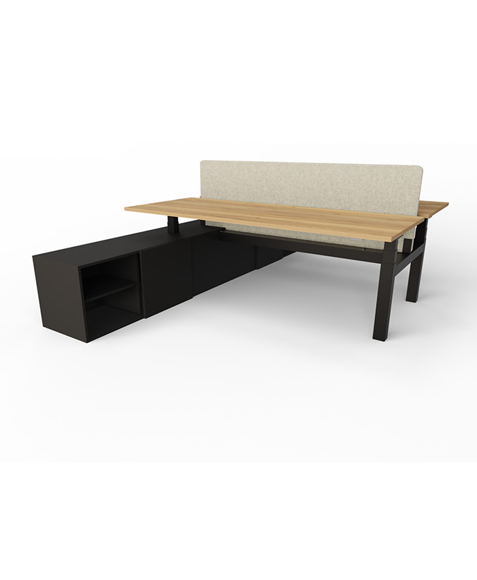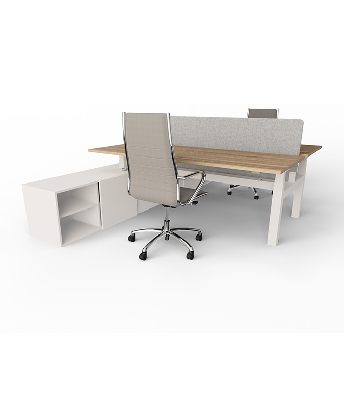 Flex zit/sta duodesk met aanbouwkast (elektrisch verstelbaar).