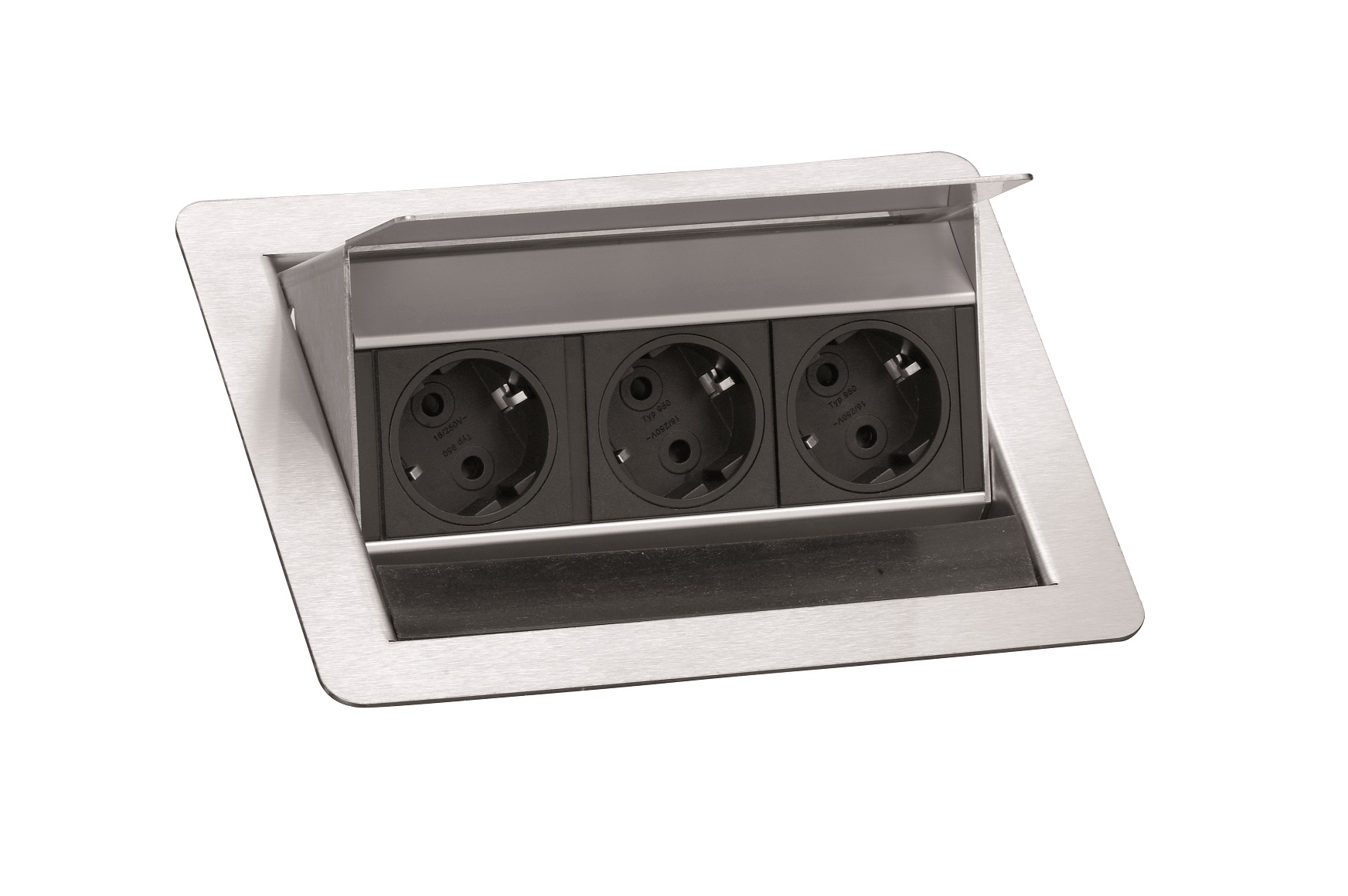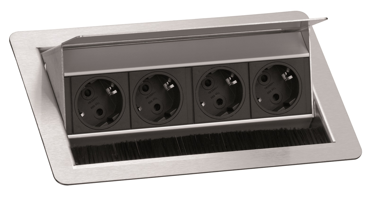 Inbouwmodule uitgevoerd in geborsteld aluminium. Voor de aansluitingen zijn verschillende samenstellingen mogelijk.