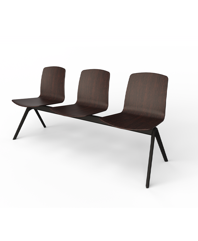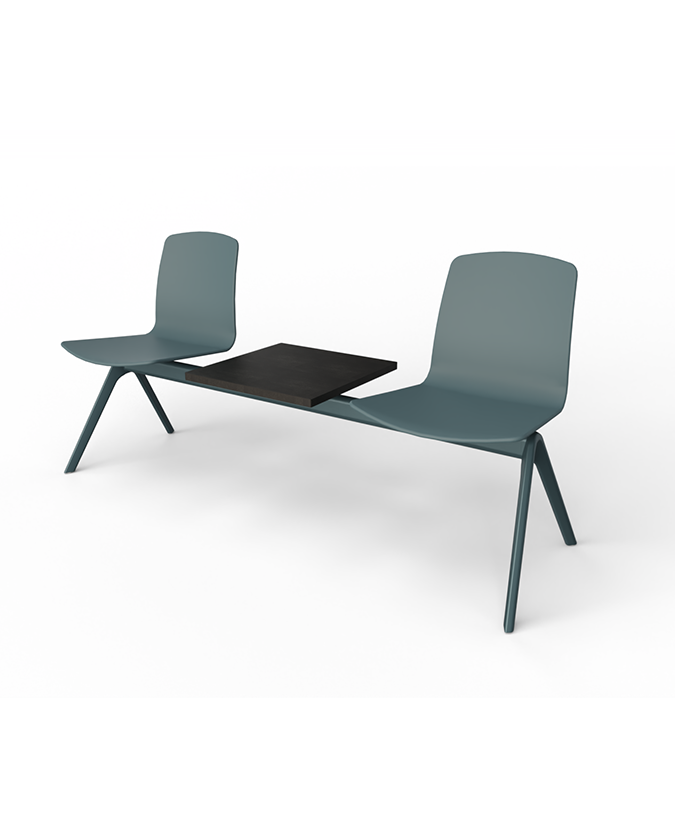 De Hann wachtbank is beschikbaar vanaf een model met 2 stoelen en kan worden verlengd tot 5 stoelen. Elke stoel kan worden voorzien van een tafelblad. De bank is leverbaar in de kleuren zwart, wit of aluminium.