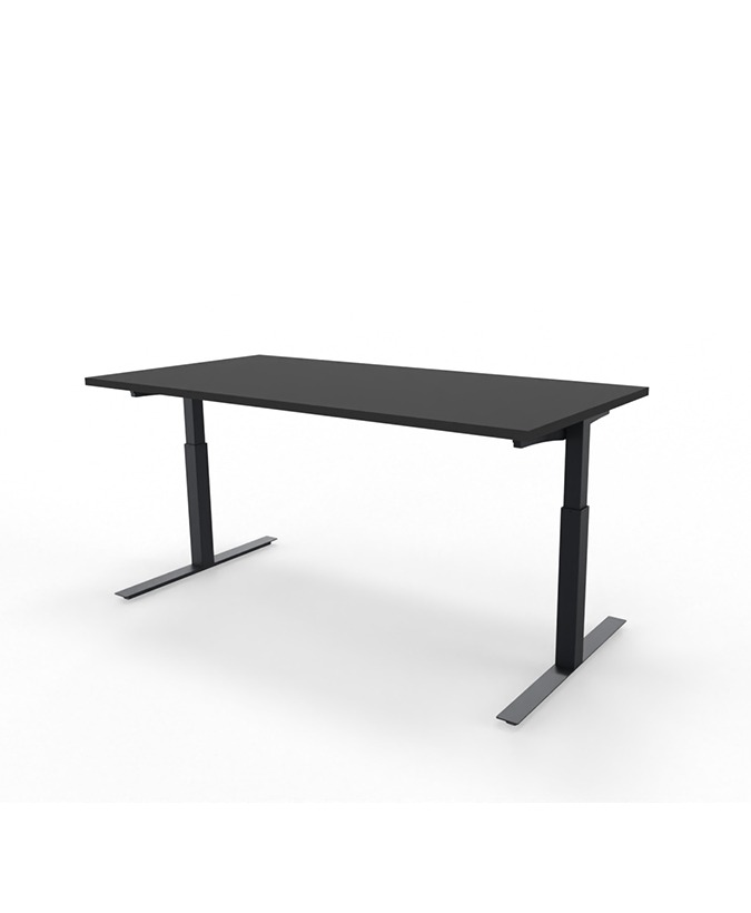 Het HVC bureau is mechanisch in hoogte instelbaar van 62 tot 85 centimeter. Het onderstel van dit bureau is leverbaar in de kleuren aluminium, zwart, wit of antraciet. Het bureau is standaard voorzien van een 25 mm melamine werkblad, leverbaar in verschillende houtdecors.