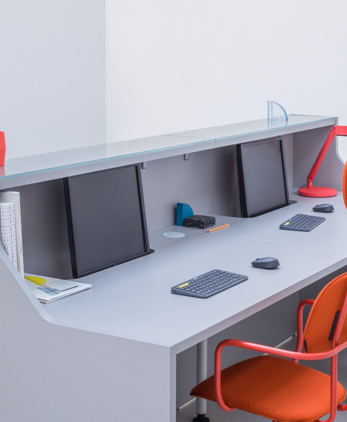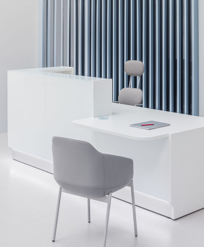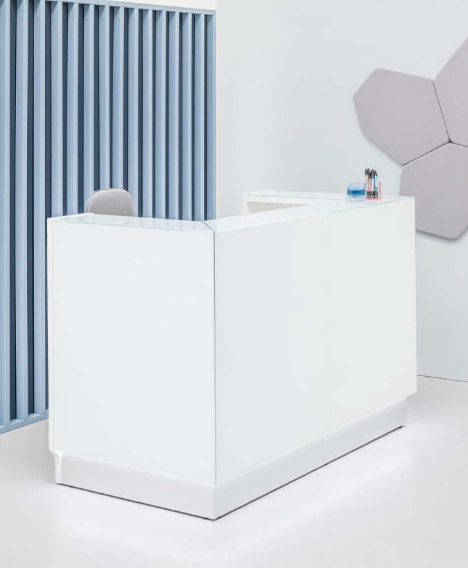 De Line receptiebalie is in verschillende kleuren verkrijgbaar. Om een impressie te krijgen wat er allemaal mogelijk is kunt u alvast de foto's bekijken. Door de complexiteit van de Line receptiebalie is het niet mogelijk om dit ontvangstmeubel via de webshop te bestellen. De vorm, uitstraling en afmetingen zijn geheel naar eigen wens te configureren. De Line receptiebalie heeft een vanaf prijs van € 1.155,00.