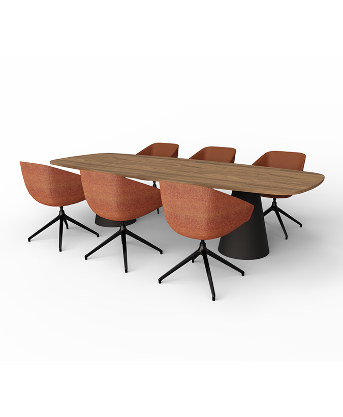 Met een elegante vorm en stevige basis is deze Piper vergadertafel met kegelvormige poot een blikvanger in iedere vergaderruimte. De Deens ovale vorm zorgt voor een vloeiende uitstraling én optimaal contact tussen iedereen die aan de tafel zit – een slimme keuze voor ruimtes die werken.