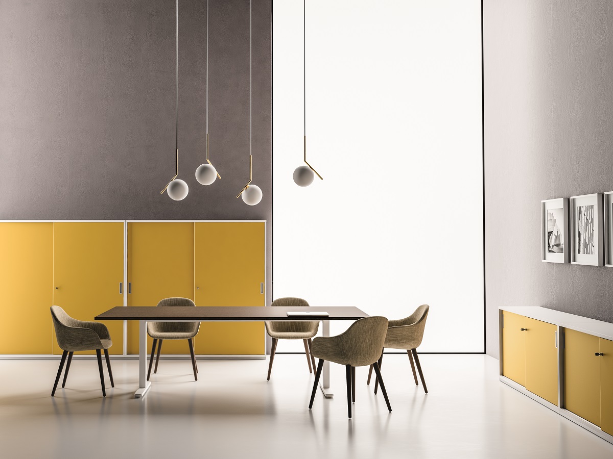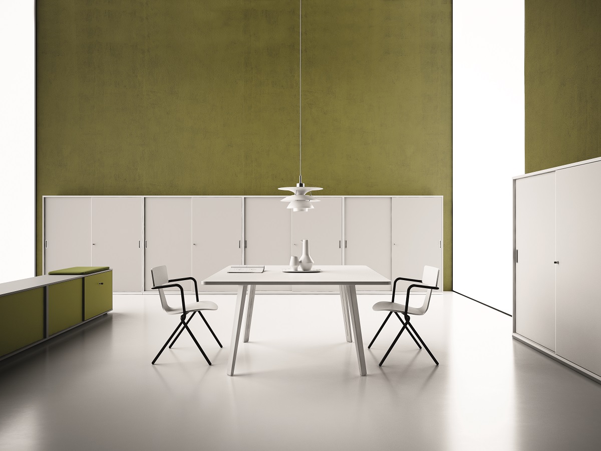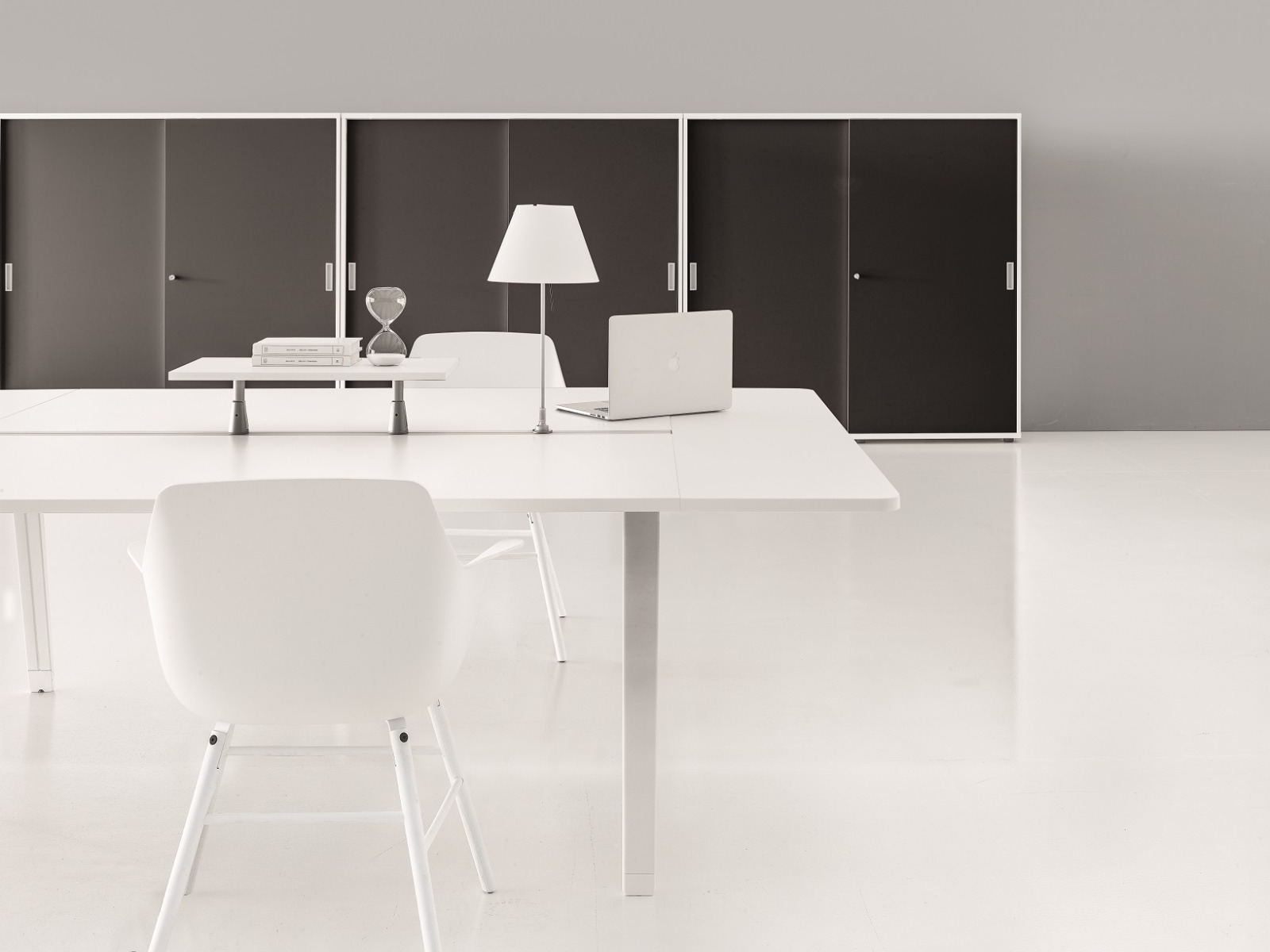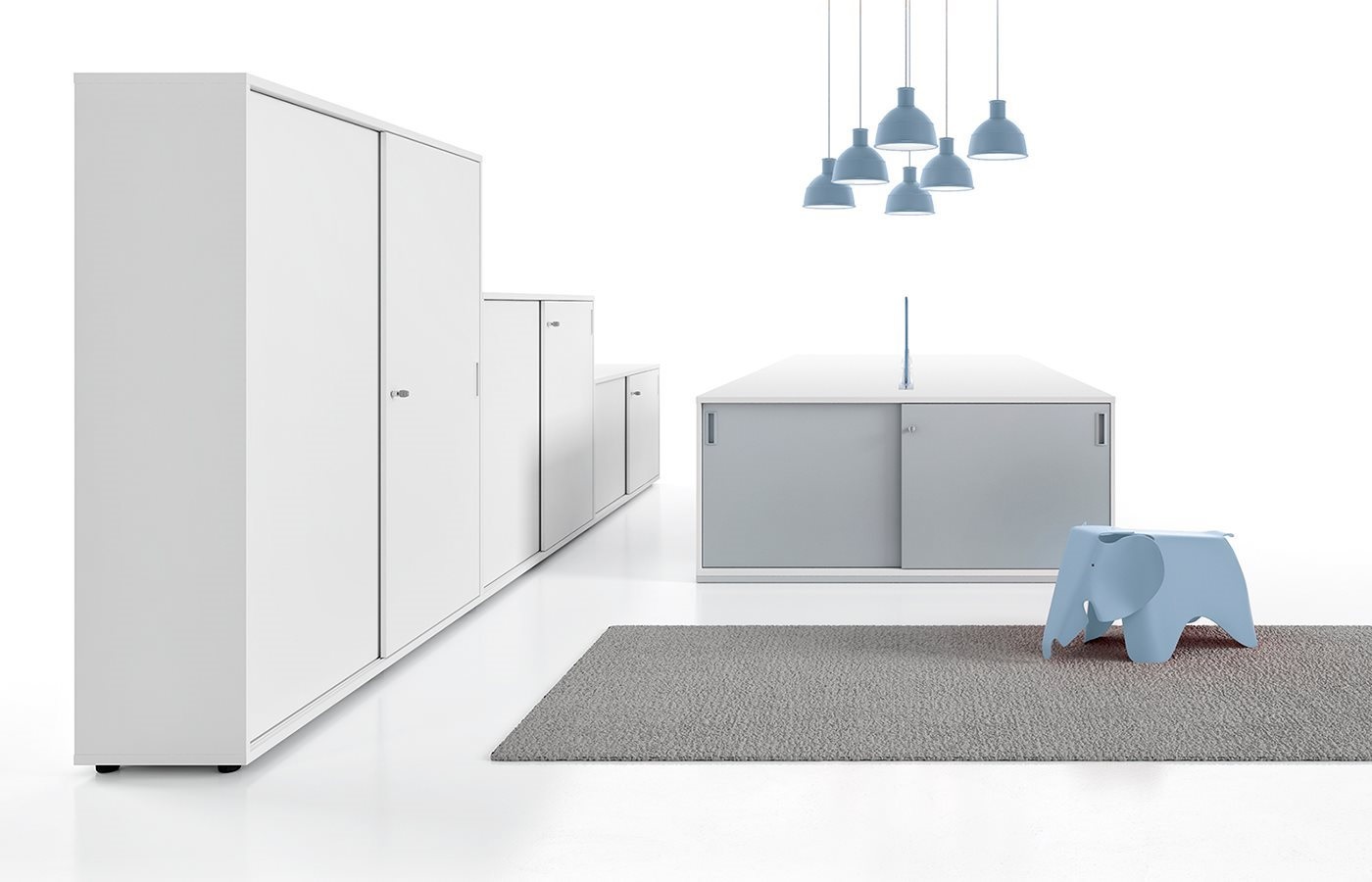Houd uw kantoor opgeruimd met de veelzijdige schuifdeurkast Uni. De kast is verkrijgbaar in verschillende hoogtes en breedtes. De kast zelf kan worden uitgevoerd in wit, aluminium of antraciet. En voor de deuren is er keuze uit diverse frisse kleuren en stijlvolle houtdecors.