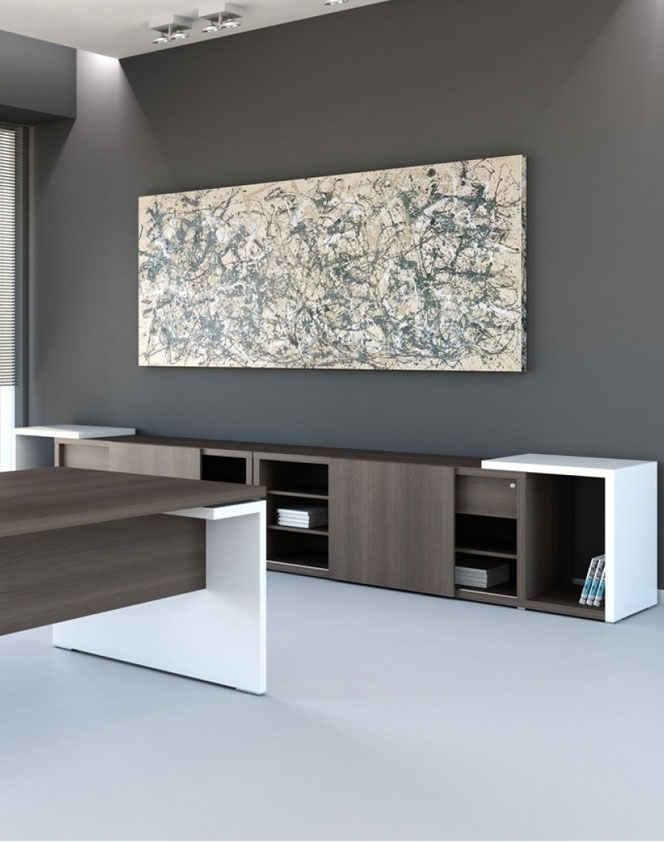 De Thomi dressoirkast met aanbouwelement komt uit de Thomi lijn. Naast deze dressoirkast bestaat de Thomi lijn uit een directiebureau, managerbureau of een draaideurkast.