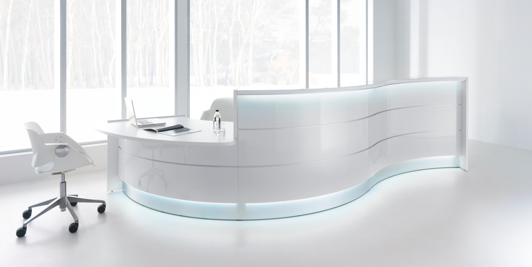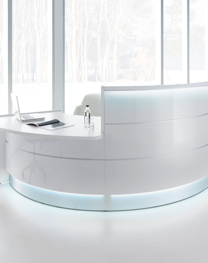 De Valley receptiebalie is in verschillende kleuren verkrijgbaar. Om een impressie te krijgen wat er allemaal mogelijk is kunt u alvast de foto's bekijken. De Valley heeft standaard een hoogte van 111 cm. De vorm, uitstraling en afmetingen zijn geheel naar eigen wens te configureren. Neem voor meer informatie contact met ons op.