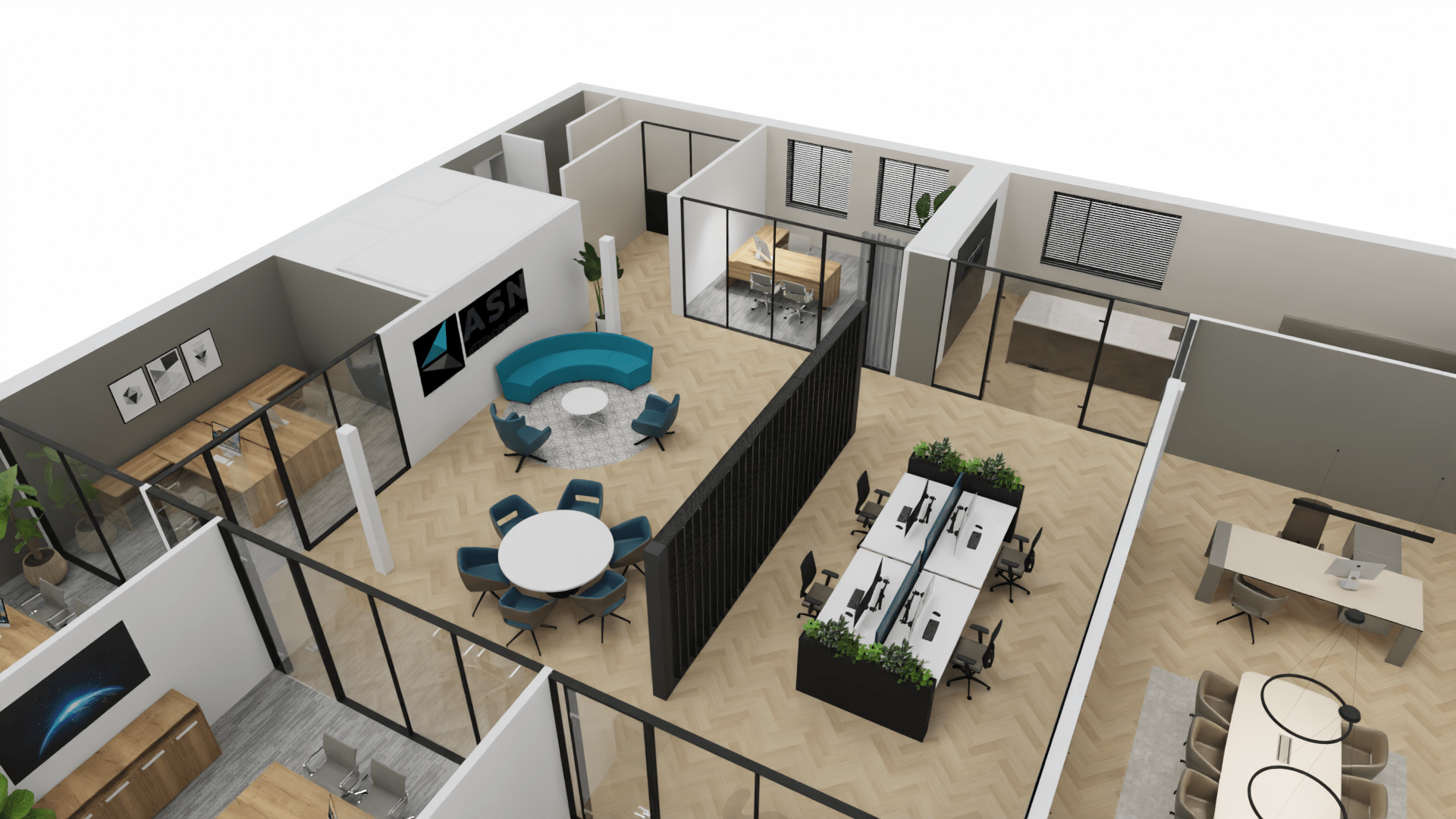 - We kijken naar de indeling van de ruimtes. Hoeveel werkplekken zijn er nodig en wat zijn nog overige wensen voor het nieuwe kantoor.